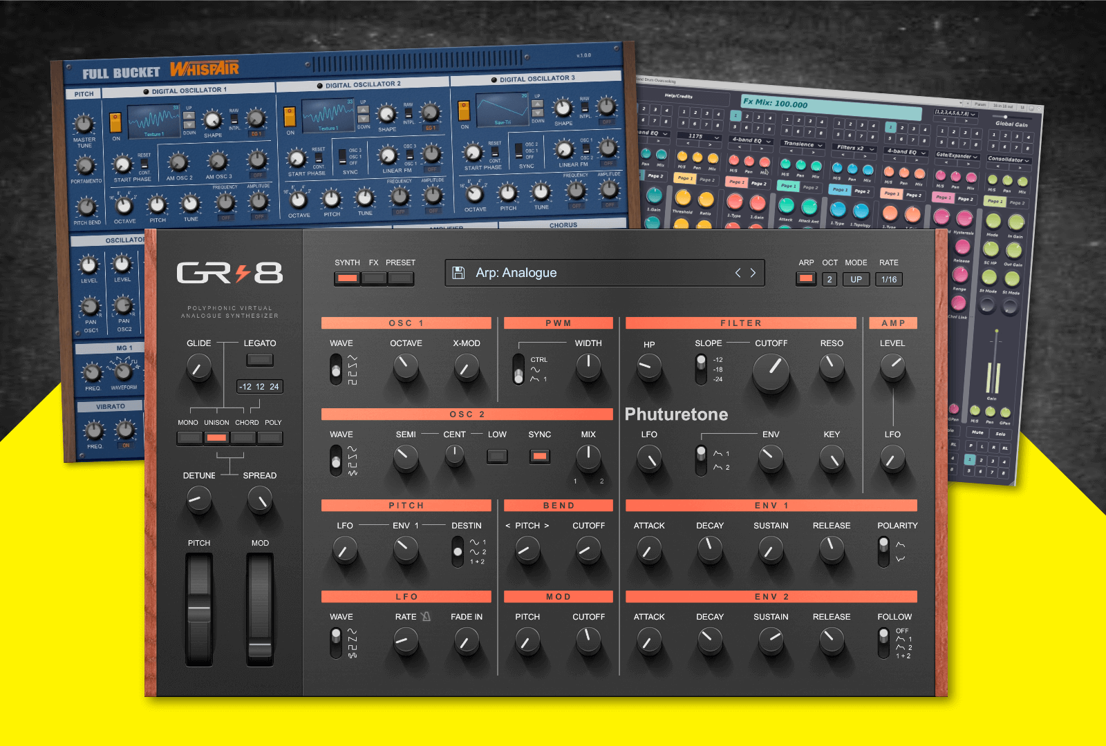 Highlights include Full Bucket Music's WhisAir wavetable synthesizer and Phuturetone's GR-8 analog synthesizer, which not only shines with a variety of effects and presets, but also comes with an arpeggiator. The mixer plug-in MixMaxTrix with its effect slots for each track is also interesting. Granular looping is offered by the Grain Strain effect tool. The resonator module FKFX Influx from FKFX is also worth testing. The sound becomes really fat with effect Cloud Chorus from Signalsmith Audio.