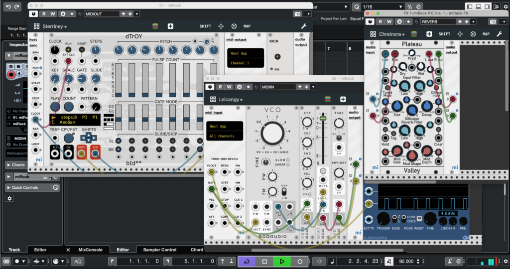 Using multiple instances simultaneously is also possible. Another advantage of the VST plugin is the support of Ableton Link, which together with the sample-accurate MIDI output allows link synchronization in DAWs. In addition to MIDI I/O and multi-channel audio I/O, many miRack devices can also be integrated into hardware Eurorack setups. The plugin windows are also scalable. Only the MIDI Learn function is currently not available compared to the AU version.