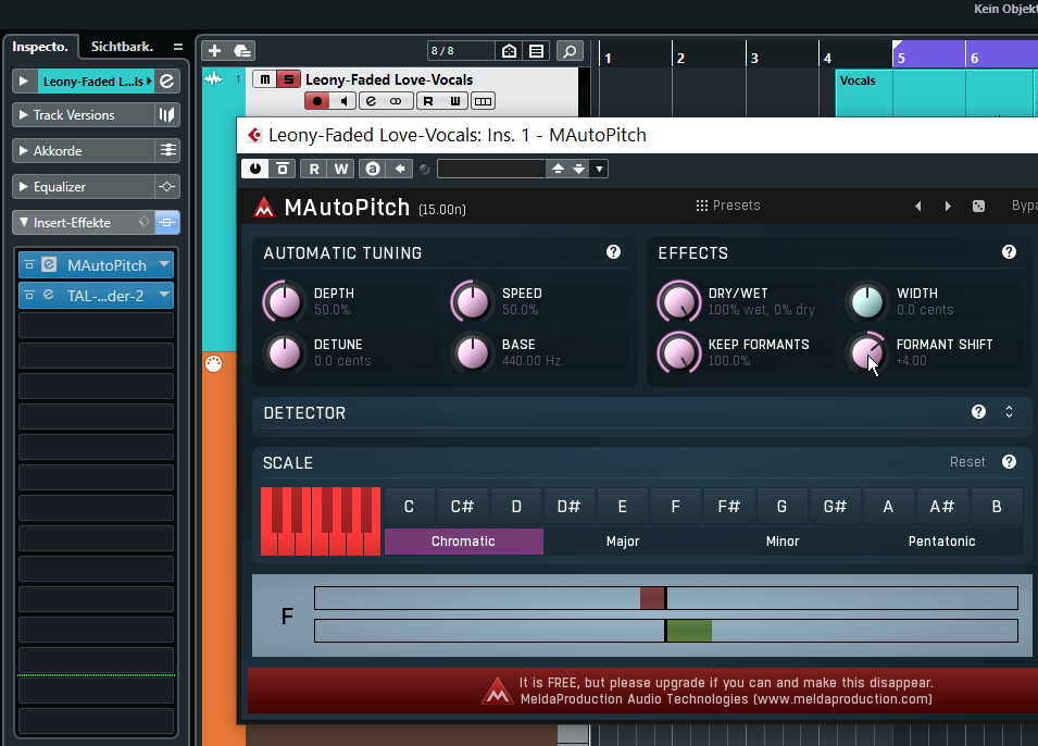 TAL-Vocoder does not have such a function, but the MeldaProduction MAutoPitch plug-in does. Simply load this into the signal path before the vocoder and experiment with the Formant-Shift parameter. With particularly dynamic vocal recordings, it is possible that individual syllables are drowned out and, therefore, not properly captured by the vocoder.