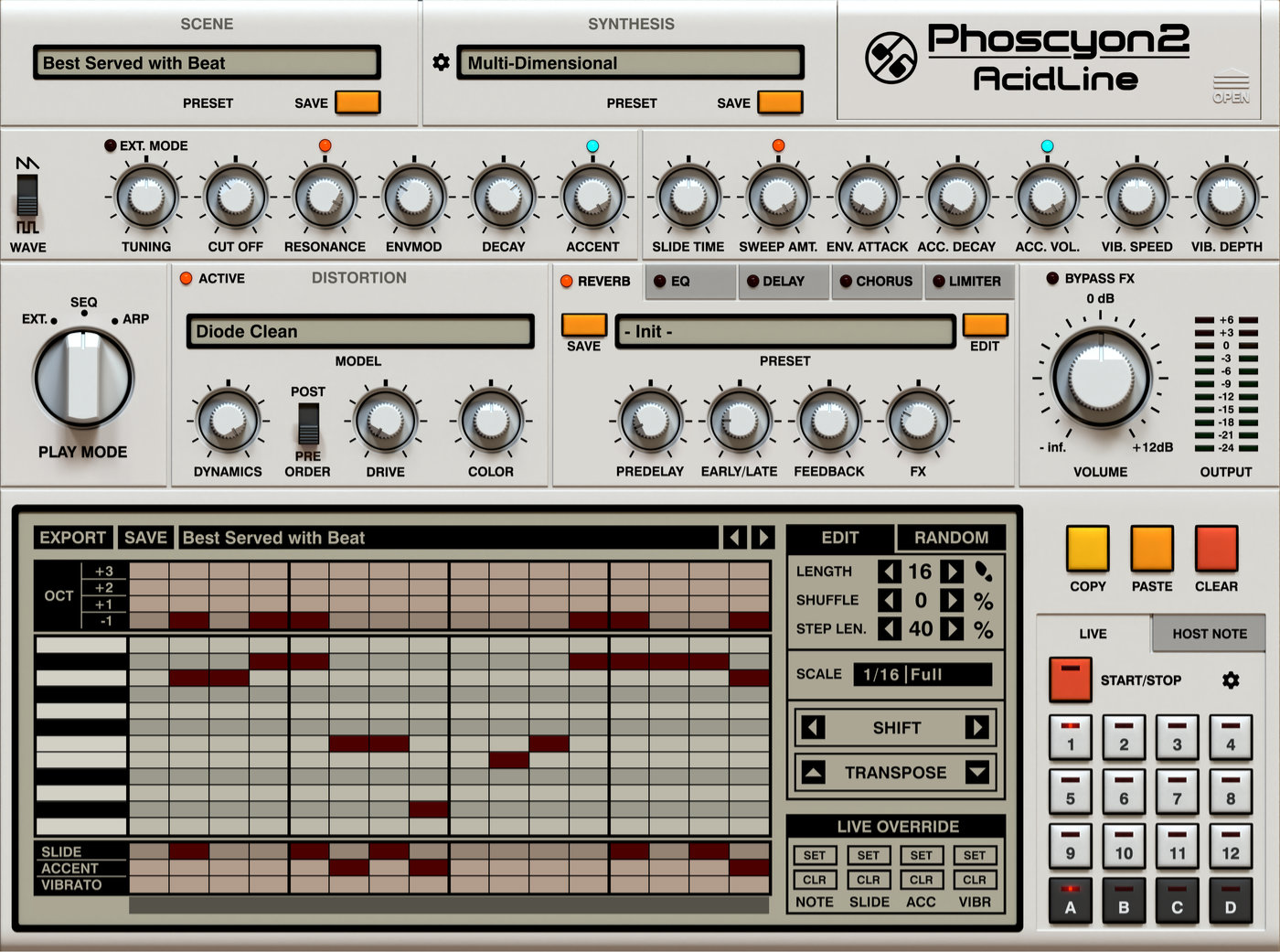 Many of us have already expected this and we are not disappointed: Phoscyon 2 skillfully secures a place at the top of the best emulations of Roland's TB-303, meeting the replicas of AudioRealism and Roland itself on equal terms. With its advanced sound generation, inspiring duo of step sequencer and arpeggiator, and excellent effects, Phoscyon 2 offers the best value for money. Classic 303 basslines, screaming riffs and pulsating sequences are quickly screwed and with the distortion effect many classic distorted 303 sounds can be convincingly recreated. The MIDI learn function also deserves a lot of praise: when you control the most important synth parameters with a MIDI controller, you get a real live feeling.
