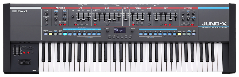 The sound, design and build quality of the synth are impressive. Very good sounding VA models of the Juno classics with added extras like super-saw, thousands of butter-and-bread sounds, an excellent piano, punchy drum kits and solid effects. With a robust case, good keyboard, many controls, vocoder with microphone input, drum computer and intelligent arp, the Juno-X covers almost all the needs of a live keyboardist and also proves to be a reliable sound supplier for all styles of music in the studio. The sound control via the numerous control elements is fast and intuitive. A deeper programming of the complex ZEN core engine via the outdated graphics display, on the other hand, is not much fun. Fortunately, there is an editor, but at least in the studio you could use the identical-sounding Zenology software instead of the hardware, which unfortunately does not allow direct exchange via USB with the Juno-X.
