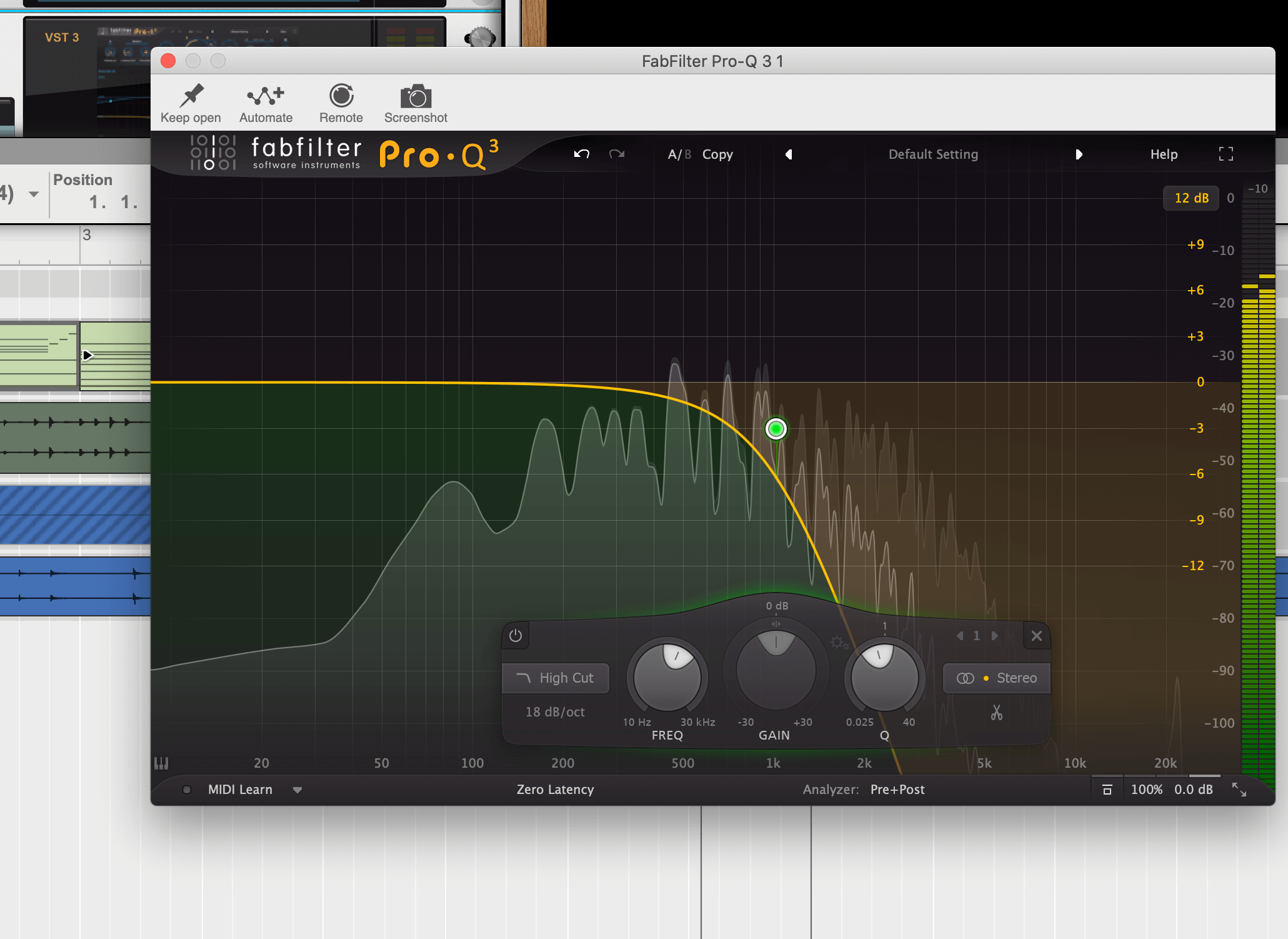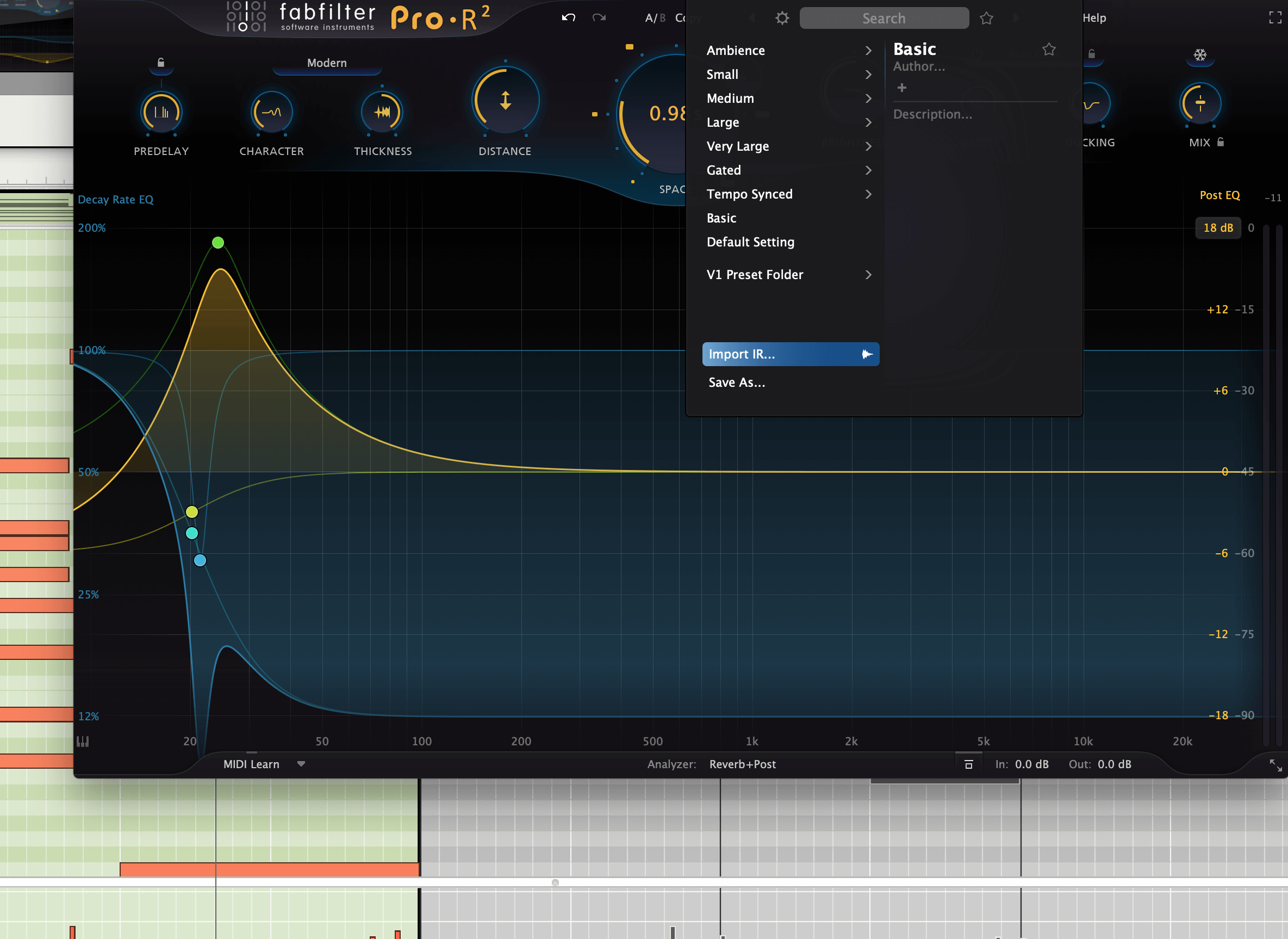 For a dull sound, we load a FabFilter Pro-Q 3 behind the piano and apply an 18 dB high cut at 1 kHz with a slope of 0.7 (Q). Behind this we load the new FabFilter Pro-R 2 Reverb and come to the real trick: instead of the existing presets, we use the new import function for impulse responses and load a reverb from the classic Akai S1100.