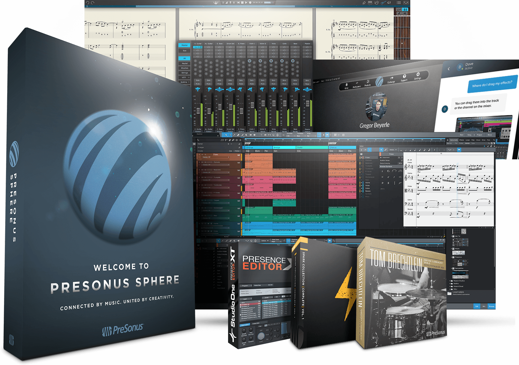 PreSonus have also just release Sphere – a membership giving musicians and producers access to the world of Studio One. With the monthly subscription price, users can get Studio One (even the Pro version), Notion, every add-in that exists and every sound library offered in PreSonus’ online shop. What does that mean exactly? There’s a large number of sample and loop libraries for Studio One’s Presence XT sampler and Impact XT Drum module, as well as the Ampire XT guitar amp/fx plug-in, several beautifully modeled boutique com- pressors and equalizers in the form of their Fat Channel plug-ins, and expansion instrument libraries for Notion software. Additionally, Sphere offers 30 Gb of cloud storage for backing up your projects (and sharing them) and offers scores of 3rd party plug-ins and instruments to keep you busy. There are over 100 add-ons you have access to with Sphere that will enhance your Studio One experience. And there’s also collaboration tools for working with others around the world (especially important in this time of social distancing).
