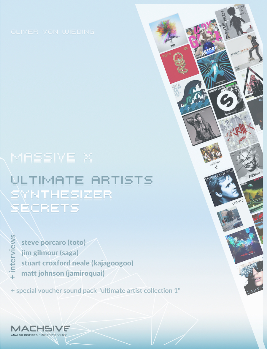 You also get insights into the sounds of Lady Gaga, Kelly Rowland, Depeche Mode, Will.I.Am, Justin Timberlake and Martin Garrix. The highlight of the book, however, is the practical use to recreate the hit sounds yourself. For this purpose, it is explained as tutorials on the basis of the software synthesizer Massive X from Native Instruments, how the sounds came about. The sound examples are available in the Massive X preset pack "Ultimate Artist Collection I". However, the sounds should be universally implementable with other synthesizers.