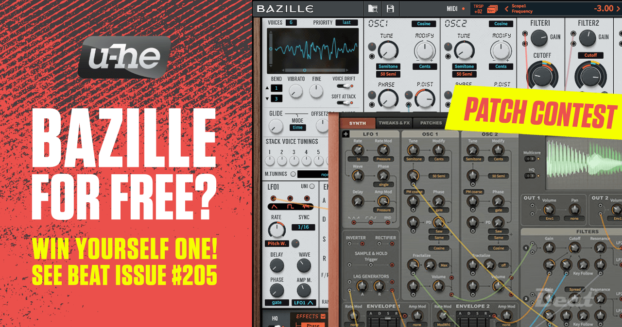 Win one of 10 u-he Bazille licenses worth 129 Euro each at the U-HE BEATzille Contest!