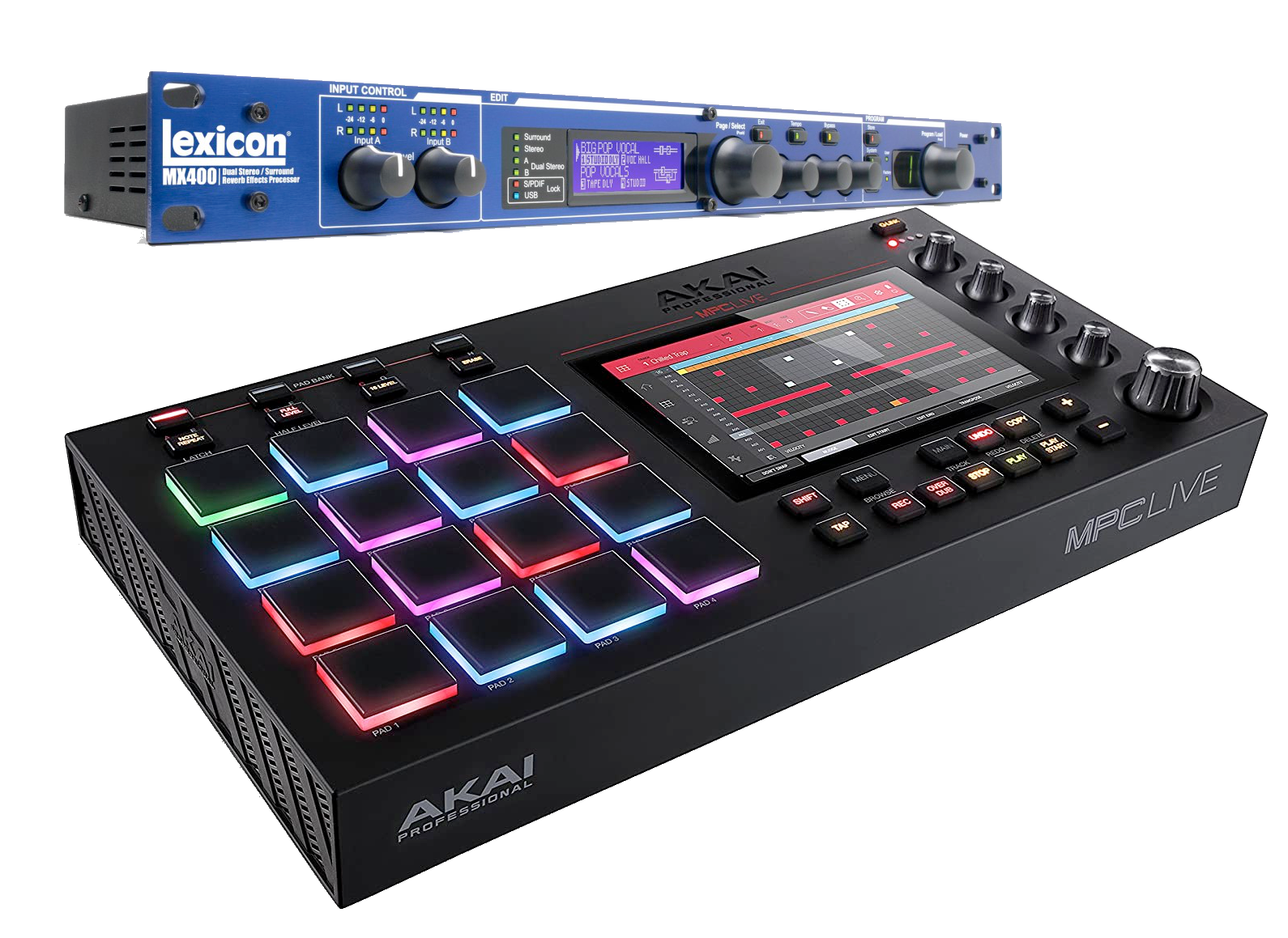 For our workshop, we use an MPC Live, but with other models the principle is the same. Only the used inputs and outputs can differ. We use an external Lexicon reverb, to which we feed Out 5/6 of the MPC. To its Input 1/2 we feed the Return output of the Reverb and set the mix portion of the Reverb to 100% wet.