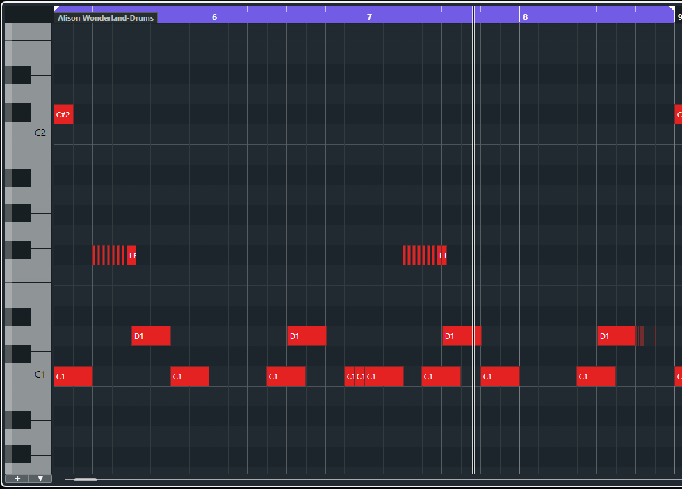 The kick plays on the eighth counts 1 and 7 in bar 1 and 4 and 8 in bar 2, and the snare always plays on the third quarter count. But how does the distinctive bumpy groove come about? For one thing, we delay the snare hits slightly, while bringing selected kicks forward a bit. Experimentation is the name of the game here to get a cool groove.
