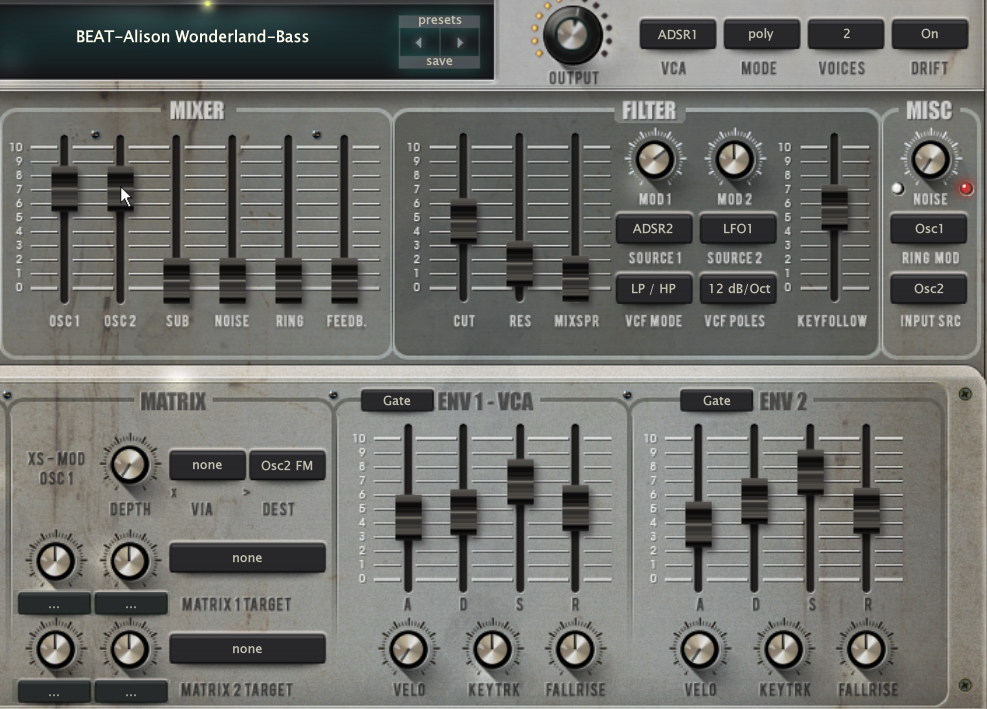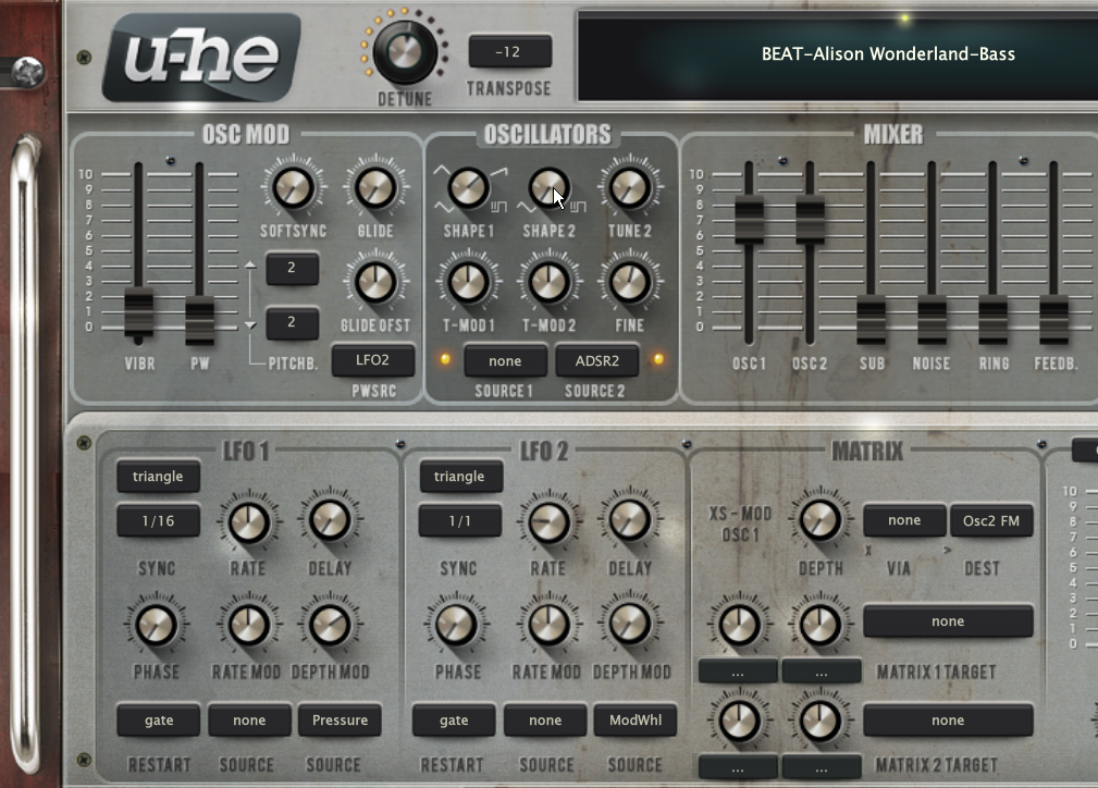 DaIn order not to let it sound too static, we set an approximate quantization (6 ticks). We also place a subtle shaker on the last eighth note in the bar. A bass sound provides the harmonic basis of „Easy“. We reprogram this with u-he Tyrell N6 . Turn the shape control of Oscillator 2 all the way to the left.