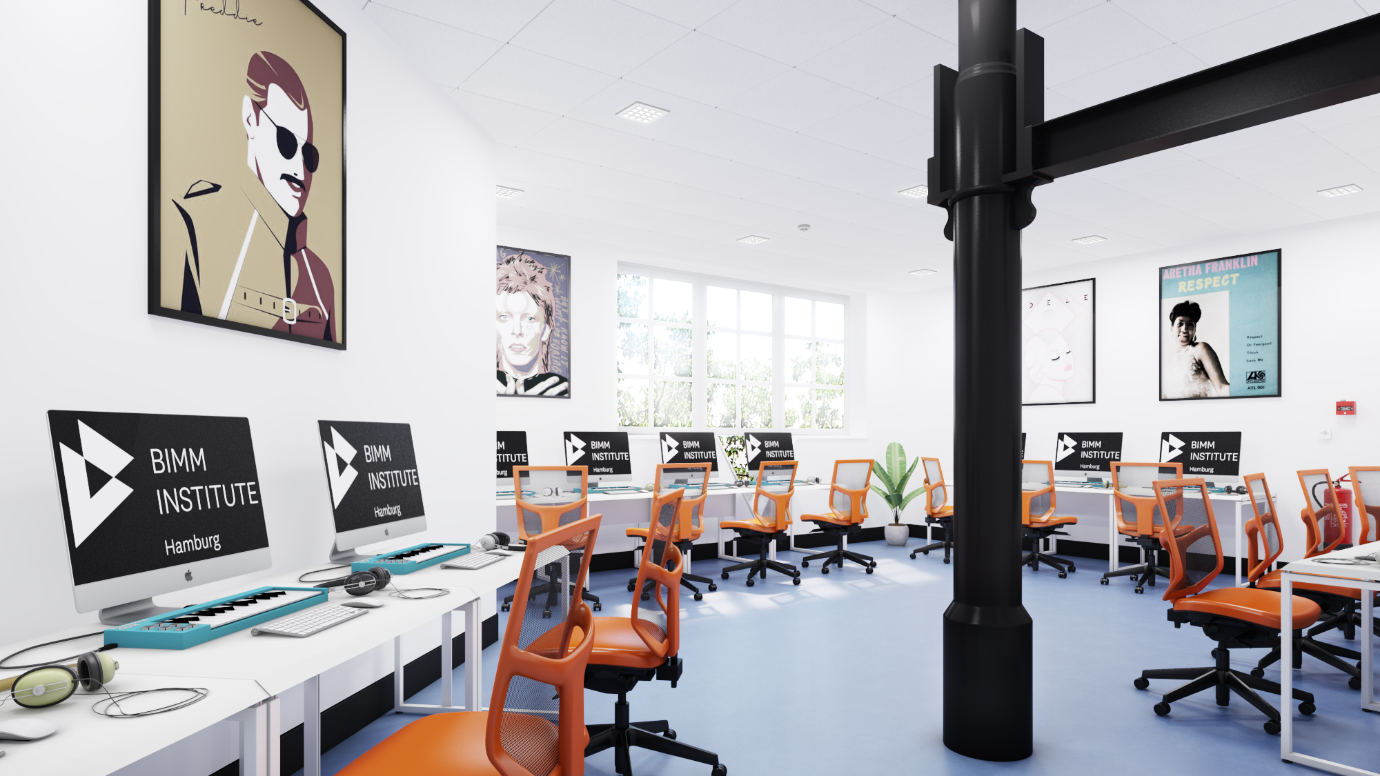 The BIMM Institute, which is represented in Hamburg and Berlin, offers a three-year full-time degree programme in English in the fields of Music Production, Music Business, Music Performance and Songwriting, both leading to an internationally recognised Bachelor's degree. The content of face-to-face teaching (music production) includes audio basics, recording, mixing and mastering as well as sound design and synthesis. From the second year onwards, the student can take the courses individually. Practice is clearly in the foreground. Technically, software from Pro Tools, Logic and Ableton Live and an Audient 8024 HE console are used. Finances, artist management, publishing and rights are covered in the music business degree. In addition to imparting knowledge of technical skills, great importance is attached to establishing networks and contacts with future clients and employers from the industry. The experienced tutors from BIMM are also strongly networked and are themselves active as musicians, producers or label bosses. There is a tuition fee of 7950 euros per year. You can find current information on funding opportunities such as BAföG on the website.